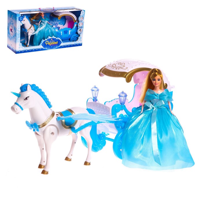 Карета для кукол «Зимнее волшебство» с куклой, лошадка ходит, световые и звуковые эффекты