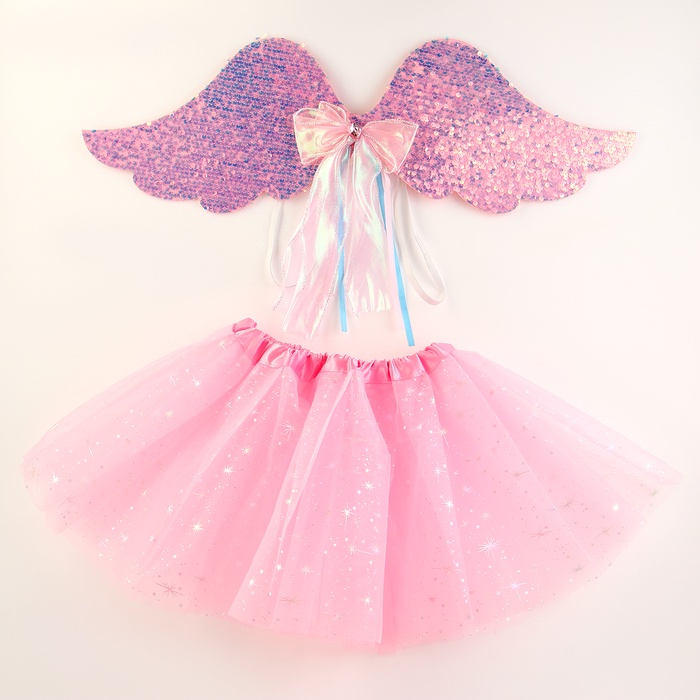 Карнавальный набор «Ангелочек» — это прекрасный выбор для создания нежного и сказочного образа. Набор состоит из двух элементов: пышной юбки и волшебных крыльев.