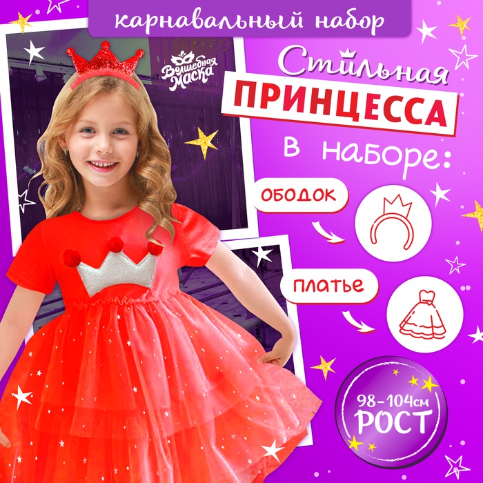 Превратите вашу малышку в настоящую принцессу с карнавальным набором «Стильная принцесса». В комплект входит изящное красное платье и ободок, который дополняет сказочный образ. Этот костюм поможет создать неповторимый образ для любого детского мероприятия, будь то день рождения или новогодний утренник.