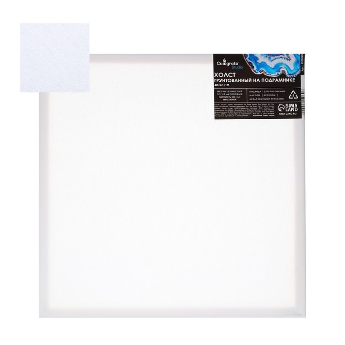 Холст на подрамнике Calligrata, хлопок 100%, 1.6×40×40 см, акриловый грунт, мелкозернистый, 280 г/м²