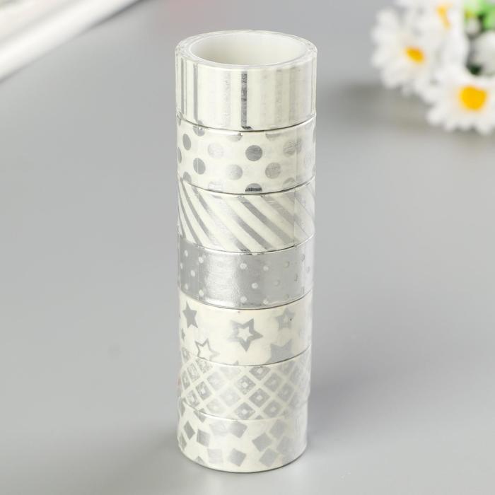 Клейкие WASHI-ленты для декора с фольгой СЕРЕБРИСТЫЕ,15 мм х 3 м (набор 7 шт) рисовая бумага - товар, который Вы можете приобрести в нашем интернет-магазине. Заказ могут оформить как юридические, так и физические лица. Бесплатная доставка по Астане, также, отправляем по РК.