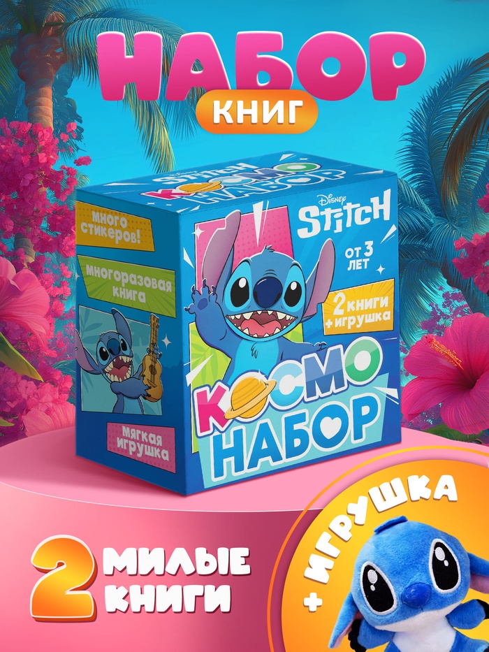 Подарочный набор «Космо-набор» — это идеальный выбор для маленьких поклонников вселенной «Лило и Стич». В комплект входят книга, мягкая игрушка и альбом с наклейками, которые подарят ребёнку часы увлекательного творчества и игр. Удобная упаковка делает набор готовым к вручению на любой праздник.