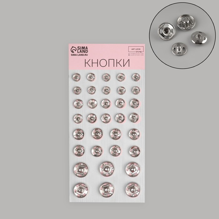 Кнопки выполнены из металла, они прочно фиксируются в закрытом виде, пришиваются к изделиям обычными нитками и не повреждают материал. Кнопки прослужат вам долго и не выйдут из строя даже после многократного использования.