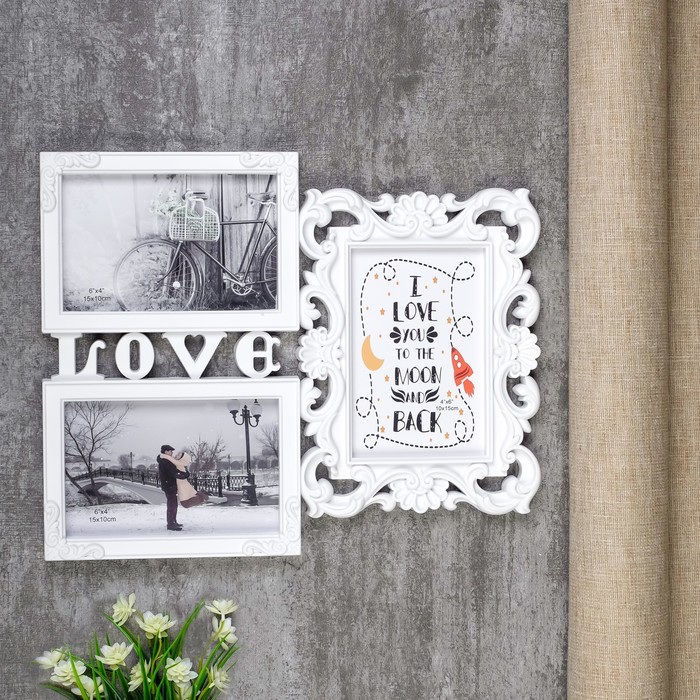 Фоторамка - коллаж на 3 фото 10×15 см «Любовь моя», белая, пластик, 26.5×32.5 см - товар, который Вы можете приобрести в нашем интернет-магазине. Заказ могут оформить как юридические, так и физические лица. Бесплатная доставка по Астане, также, отправляем по РК.