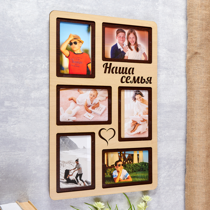Фоторамка ЛХДФ "Наша семья" на 6 фото 10x15см. Размер изделия 33x51см. - товар, который Вы можете приобрести в нашем интернет-магазине. Заказ могут оформить как юридические, так и физические лица. Бесплатная доставка по Астане, также, отправляем по РК.