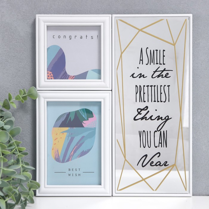 Фоторамка на 2 фото 10х10, 10х15 см+зеркало "Улыбка" белая набор 3 шт 31х27 см - товар, который Вы можете приобрести в нашем интернет-магазине. Заказ могут оформить как юридические, так и физические лица. Бесплатная доставка по Астане, также, отправляем по РК.
