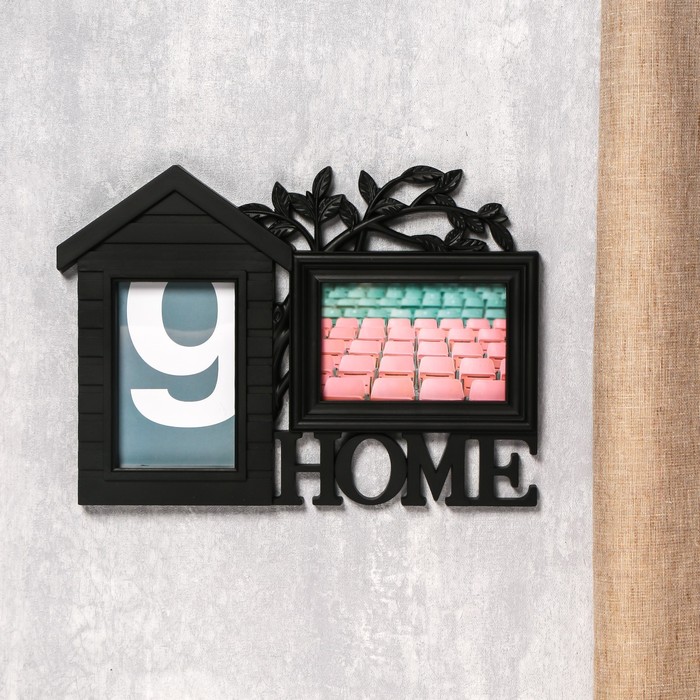 Фоторамка пластик на 2 фото 10х15 см "Дом и дерево" чёрная 26,5х34 см