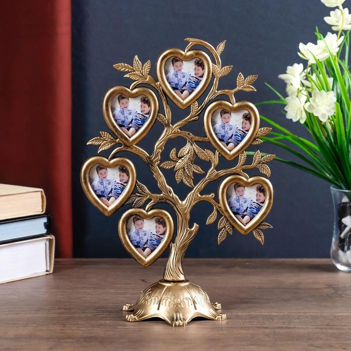 Фоторамка-коллаж на 6 фото 4.5×3 см «Дерево с сердцами», пластик, мультирамка, т. золото, 26.5×19.5×11 см - товар, который Вы можете приобрести в нашем интернет-магазине. Заказ могут оформить как юридические, так и физические лица. Бесплатная доставка по Астане, также, отправляем по РК.