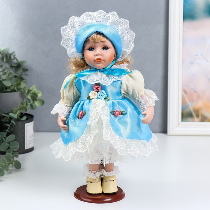 Кукла коллекционная керамика "Алиса в голубом платьице и чепчике" 30 см