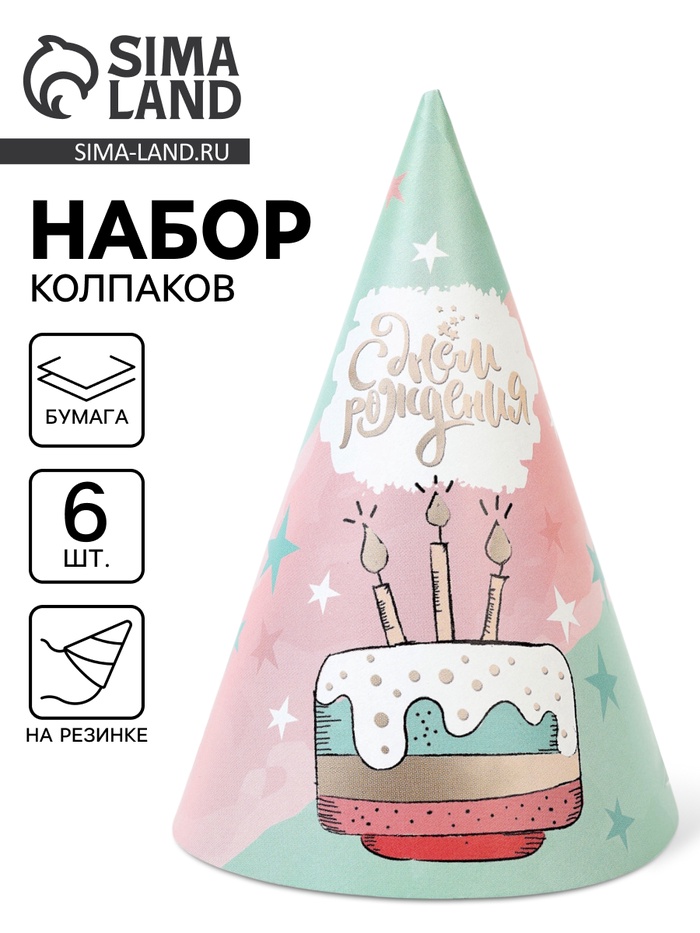 Колпак праздничный бумажный «С Днём рождения», 6 шт. - товар, который Вы можете приобрести в нашем интернет-магазине. Заказ могут оформить как юридические, так и физические лица. Бесплатная доставка по Астане, также, отправляем по РК.