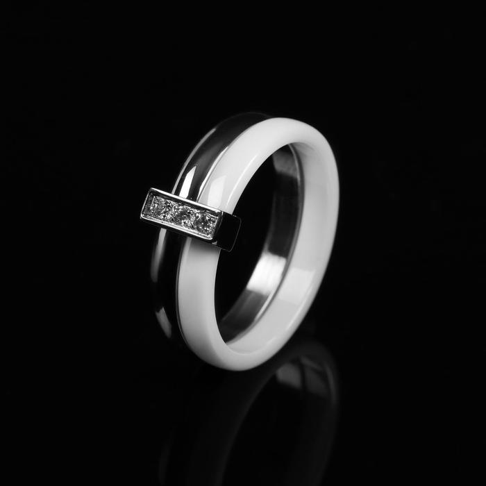 Кольцо керамика "Дуэт", цвет белый в серебре, 17,5 размер