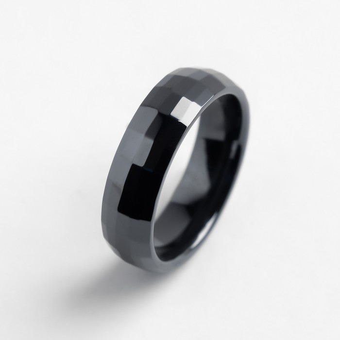 Кольцо керамика "Минимал" огранка прямоугольник мелкий, 6мм, цвет чёрный, 18 размер