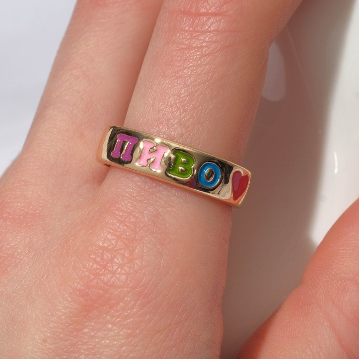 Кольцо с надписью «Пиво», цветное в золоте, размер 18 - товар, который Вы можете приобрести в нашем интернет-магазине. Заказ могут оформить как юридические, так и физические лица. Бесплатная доставка по Астане, также, отправляем по РК.