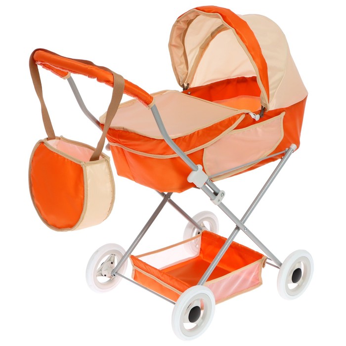 Коляска кукольная №4, цвет оранжевый с бежевым - товар, который Вы можете приобрести в нашем интернет-магазине. Заказ могут оформить как юридические, так и физические лица. Бесплатная доставка по Астане, также, отправляем по РК.