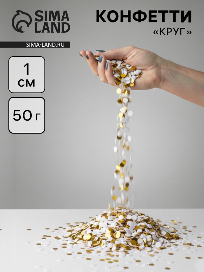 Золотой микс конфетти в форме кругов — фольга и тишью. Не просто блеск, а диалог текстур: гладкая металлическая фольга отражает, мягкая крепированная тишью приглушает, и вместе они создают глубину, почти тактильную. Белые и золотые круги чередуются естественно — как искры и тени в одном дыхании. Такой наполнитель подходит там, где важна утончённая роскошь без помпезности.