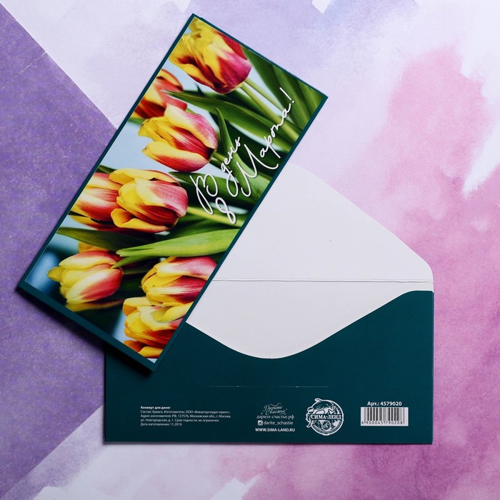 Конверт для денег «В день 8 марта!» тюльпаны, 16.5 х 8 см - товар, который Вы можете приобрести в нашем интернет-магазине. Заказ могут оформить как юридические, так и физические лица. Бесплатная доставка по Астане, также, отправляем по РК.