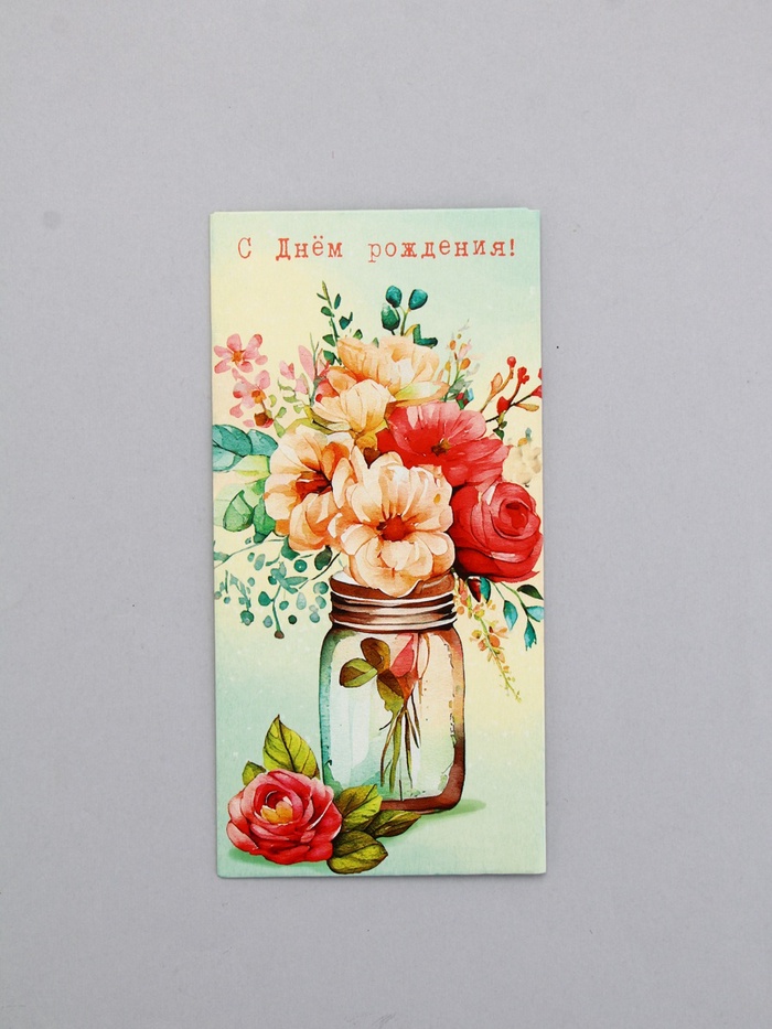 Конверт для денег «В День Рождения!», ваза с цветами, 16,5 х 8 см