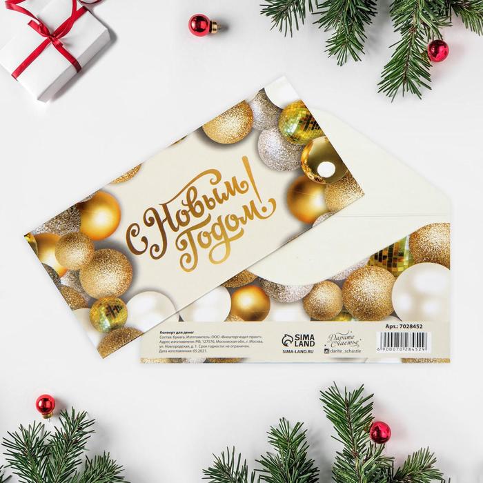 Конверт для денег «Золотистые шары», 16,5 х 8 см, Новый год - товар, который Вы можете приобрести в нашем интернет-магазине. Заказ могут оформить как юридические, так и физические лица. Бесплатная доставка по Астане, также, отправляем по РК.