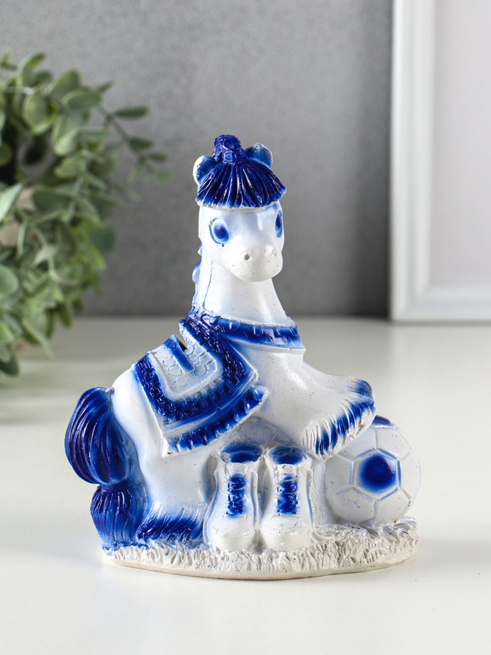 Эта бело-голубая гипсовая лошадь станет не просто копилкой, а верным спутником на пути к вашим финансовым целям. Элегантная фигурка животного с мячом напоминает о силе, грации и движении вперёд, превращая процесс накопления в красивый ритуал.