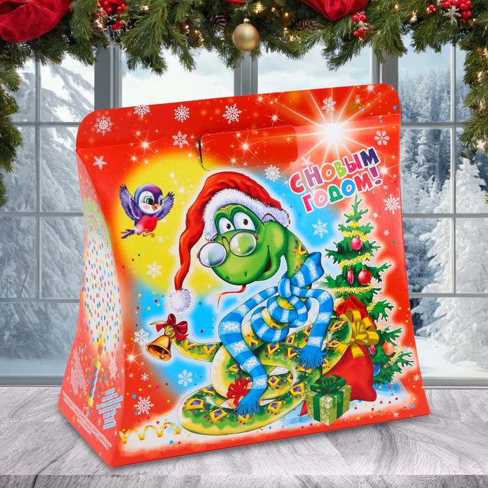 Коробка выполнена из качественных материалов, которые обеспечивают сохранность содержимого. Она имеет яркий и красочный дизайн, который отражает атмосферу Нового года.