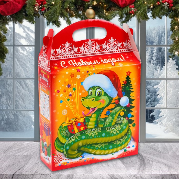 Коробка выполнена из качественных материалов, которые обеспечивают сохранность содержимого. Она имеет яркий и красочный дизайн, который отражает атмосферу Нового года.
