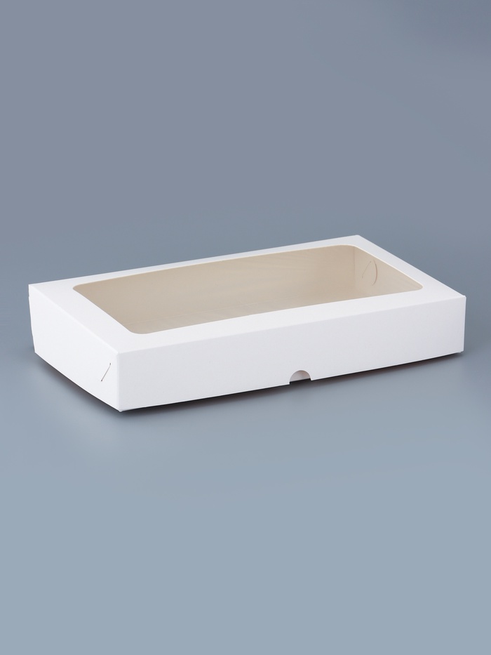 Элегантная упаковка с обзором содержимого! Белая коробка с окошком 26×15×4 см — это складная упаковка для подарков и товаров. Прозрачное окно демонстрирует содержимое, сохраняя эстетику белого цвета.
