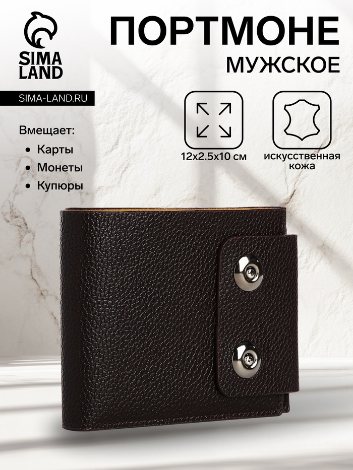 Портмоне мужское на магнитах, отдел для купюр, для карт, для монет, цвет коричневый - товар, который Вы можете приобрести в нашем интернет-магазине. Заказ могут оформить как юридические, так и физические лица. Бесплатная доставка по Астане, также, отправляем по РК.