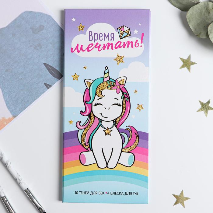 В состав набора входит 10 теней (вес – по 1,3 г) и 4 блеска (вес – по 0,8 г) разных оттенков, и такой набор косметики для макияжа будет отличным сюрпризом для маленьких принцесс!