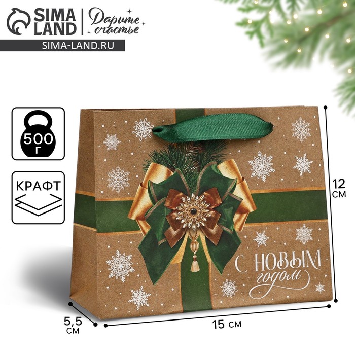 Пакет подарочный новогодний крафтовый вертикальный «Новогодний бант», S 15 х 12 х 5.5 см - товар, который Вы можете приобрести в нашем интернет-магазине. Заказ могут оформить как юридические, так и физические лица. Бесплатная доставка по Астане, также, отправляем по РК.