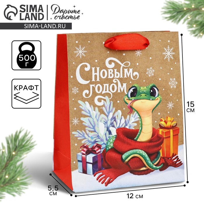 Пакет подарочный новогодний крафтовый вертикальный «Змея 2025», S 15 х 12 х 5.5 см - товар, который Вы можете приобрести в нашем интернет-магазине. Заказ могут оформить как юридические, так и физические лица. Бесплатная доставка по Астане, также, отправляем по РК.