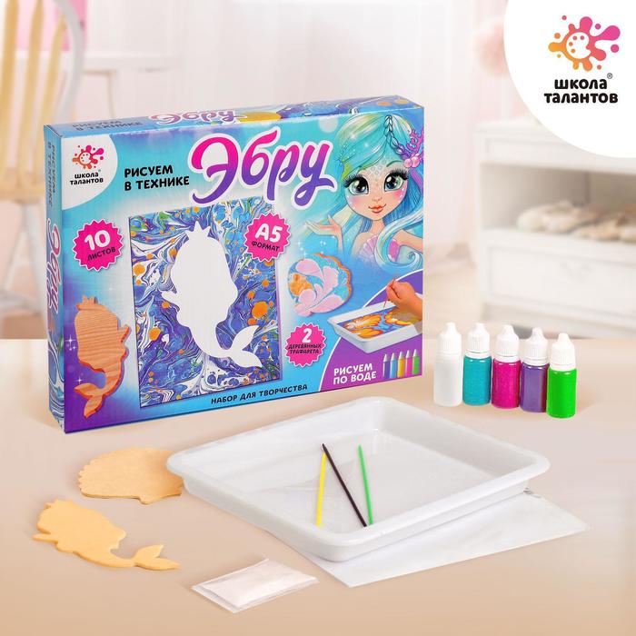 Эбру — техника рисования на поверхности воды с последующим переносом изображения на другую основу. Набор для творчества поможет вам познакомиться с этой удивительной техникой живописи, а также развить воображение, мелкую моторику и проявить творческие способности. Получившуюся картину можно перенести не только на бумагу, но и на ткань.