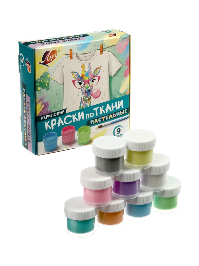 Акриловые краски для ткани, 9 пастельных оттенков — компактный набор для творчества на одежде, сумках и текстильных аксессуарах. Пастельные цвета помогают создавать мягкие и гармоничные рисунки без резких контрастов.