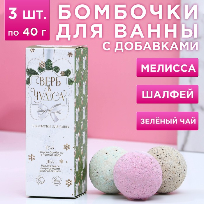 Бомбочки для ванны с добавками «Верь в чудеса!», 3×40 г, аромат мелисса, шалфей, зелёный чай, Чистое счастье - товар, который Вы можете приобрести в нашем интернет-магазине. Заказ могут оформить как юридические, так и физические лица. Бесплатная доставка по Астане, также, отправляем по РК.