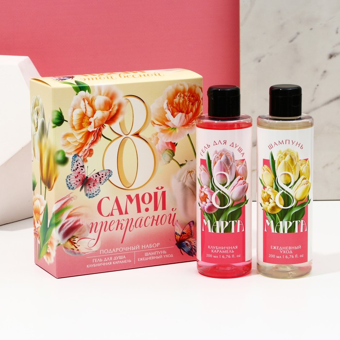 Гель для душа и шампунь для волос «Самой прекрасной», подарочный набор, 2 х 200 мл, ЧИСТОЕ СЧАСТЬЕ