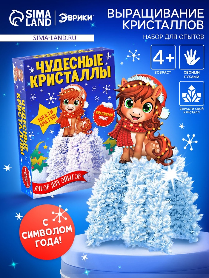 Белый кристалл, созданный собственными руками, станет настоящим зимним чудом. Познакомьтесь с набором для эксперимента ”Чудесные кристаллы с лошадкой” – творческой игрой, в которой наука и волшебство соединяются в одном увлекательном процессе. Шаг за шагом ребёнок наблюдает, как прозрачный раствор превращается в сверкающую снежную фигурку, а готовый кристалл станет праздничным украшением или памятным сувениром.