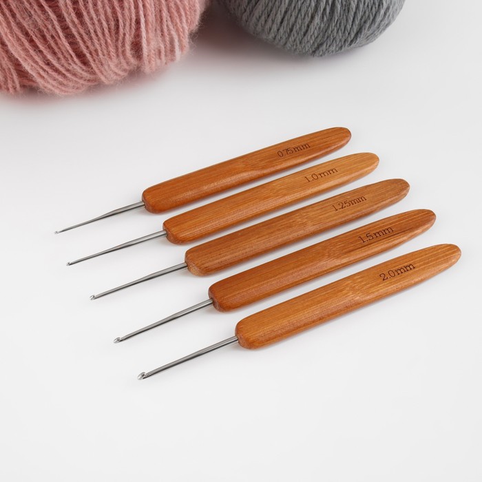 Набор крючков для вязания, с бамбуковыми ручками, d=0.75/1/1.25/1.5/2 мм, 13.5 см, 5 шт. - товар, который Вы можете приобрести в нашем интернет-магазине. Заказ могут оформить как юридические, так и физические лица. Бесплатная доставка по Астане, также, отправляем по РК.