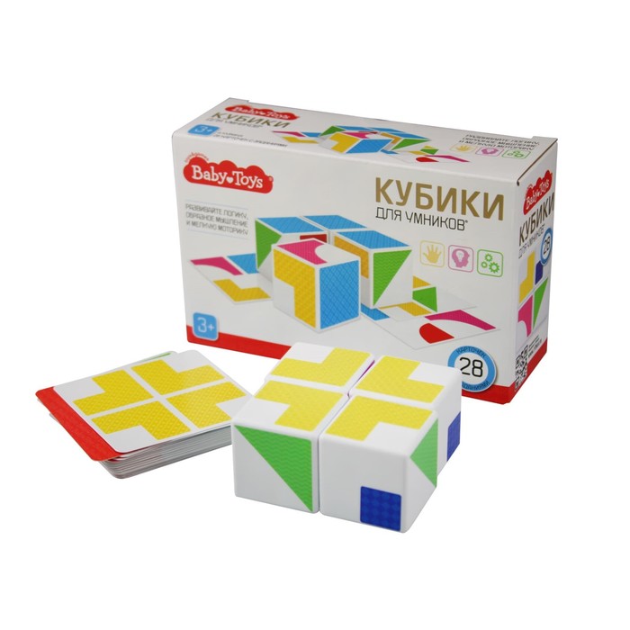 Кубики пластиковые 4 штуки «Кубики для умников», с карточками