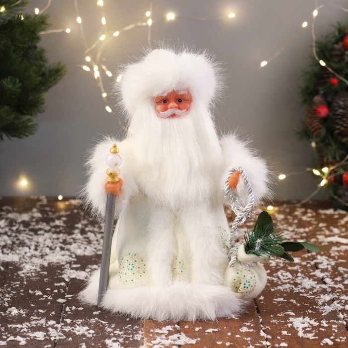 Дед Мороз под ёлку «Зимнее волшебство. В пушистой шубе, с мешком» двигается, 30 см, белый - товар, который Вы можете приобрести в нашем интернет-магазине. Заказ могут оформить как юридические, так и физические лица. Бесплатная доставка по Астане, также, отправляем по РК.