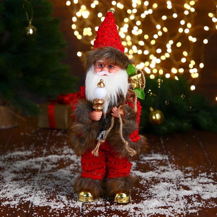Дед Мороз "В красной шубке с серебристым мешком" 14 см