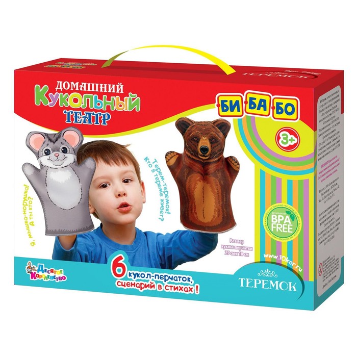 Погрузитесь в мир русской народной сказки! Кукольный театр «Теремок» с куклами-перчатками — это увлекательная игра, которая оживит любимый сюжет и подарит ребёнку радость творчества. В комплекте шесть персонажей и сценарий в стихах, что делает постановку лёгкой и увлекательной.