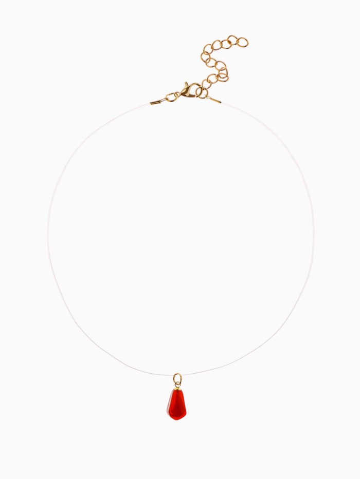 Глубокий бордовый оттенок кулона на леске создаёт выразительный акцент, который легко впишется в любой образ, добавляя ему загадочности и утончённости. Длина 33 см с дополнительными 5 см позволяет регулировать посадку, обеспечивая комфорт и универсальность ношения.