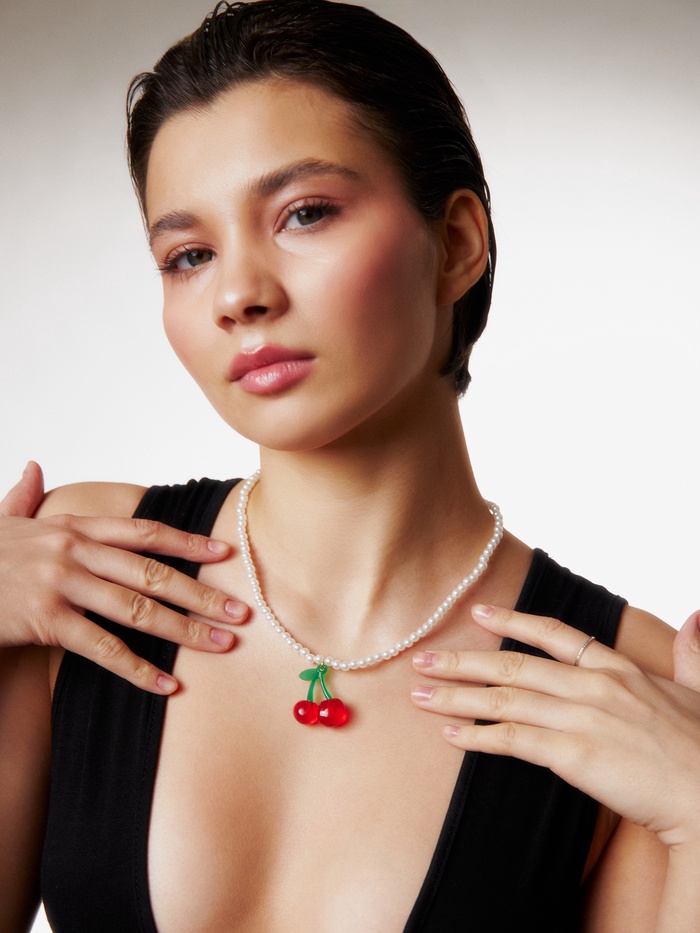 Кулон на жемчужной нити «Вишня» готов стать вашим любимым дополнением к ежедневному гардеробу, даря удовольствие и уверенность в каждом вашем образе.