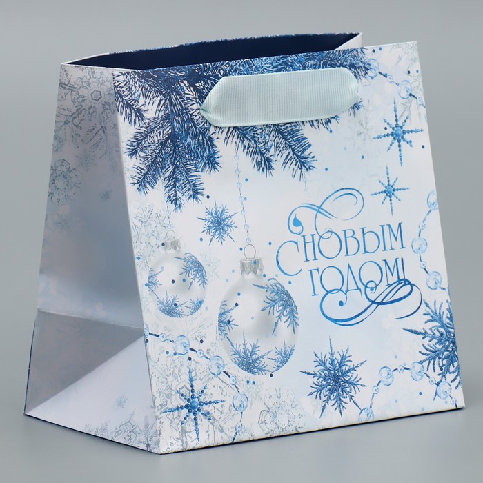 Пакет подарочный новогодний ламинированный квадратный «Снежинки», 14 х 14 х 9 см - товар, который Вы можете приобрести в нашем интернет-магазине. Заказ могут оформить как юридические, так и физические лица. Бесплатная доставка по Астане, также, отправляем по РК.
