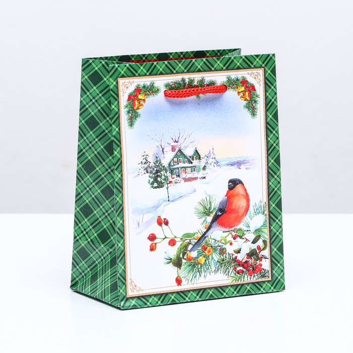 Новогодний подарочный пакет с ярким, красочным рисунком создаст праздничное настроение.