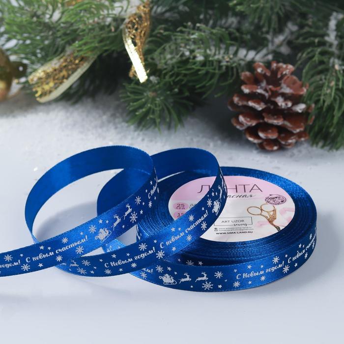 Лента атласная «С Новым годом», 15 мм, 23 ± 1 м, цвет синий №122 - товар, который Вы можете приобрести в нашем интернет-магазине. Заказ могут оформить как юридические, так и физические лица. Бесплатная доставка по Астане, также, отправляем по РК.