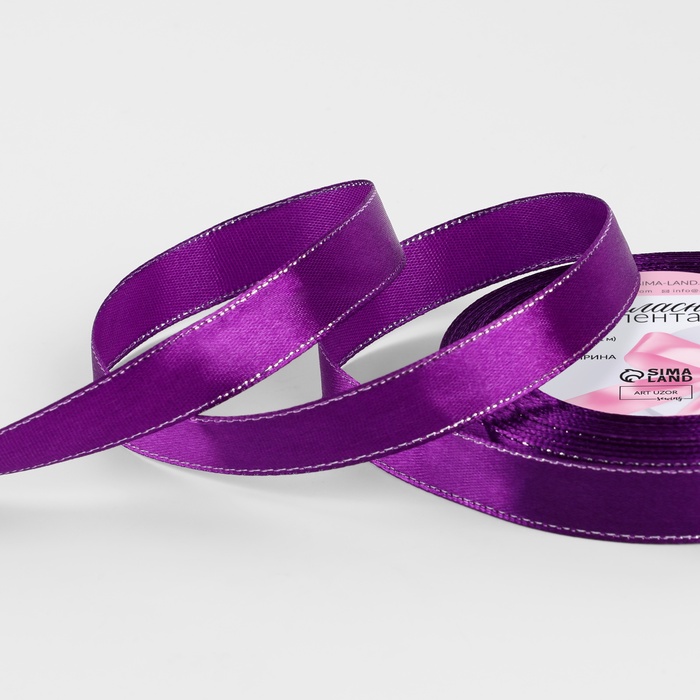 Лента атласная, с золотым люрексом, 15 мм, 23±1 м, фиолетовая №35
