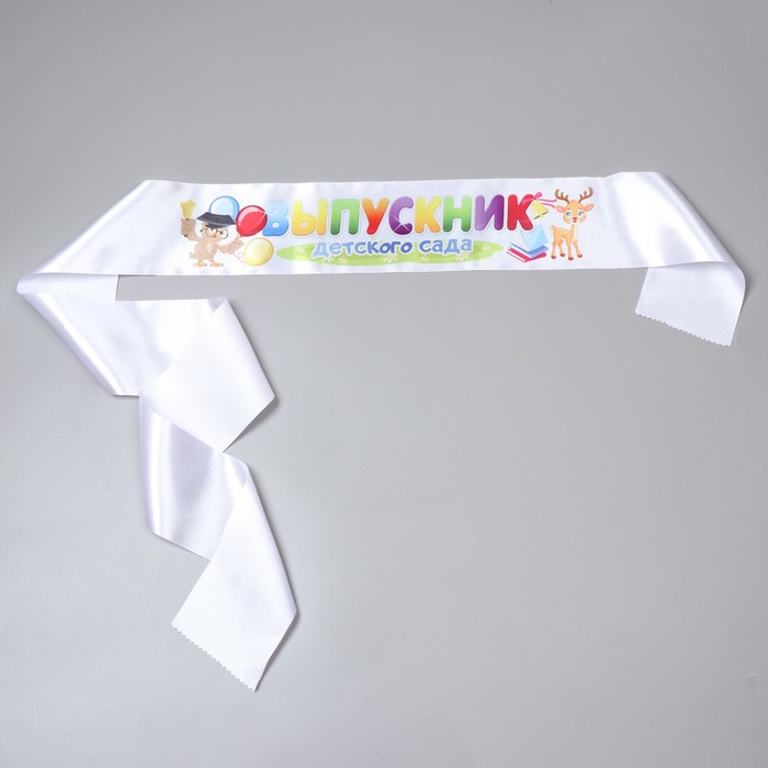 Лента полноцвет "Выпускник дет. сада сова". Атлас белый (10*160)
