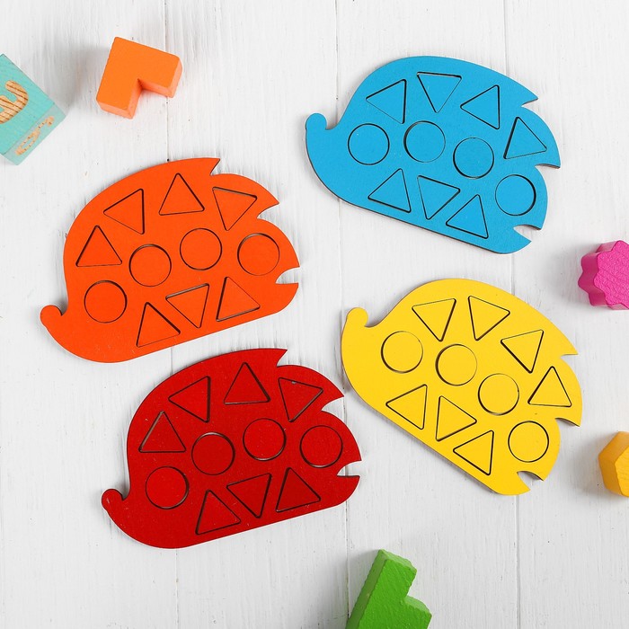 предложите малышу расположить фигурки в основе ёжика так, чтобы он стал одноцветным
