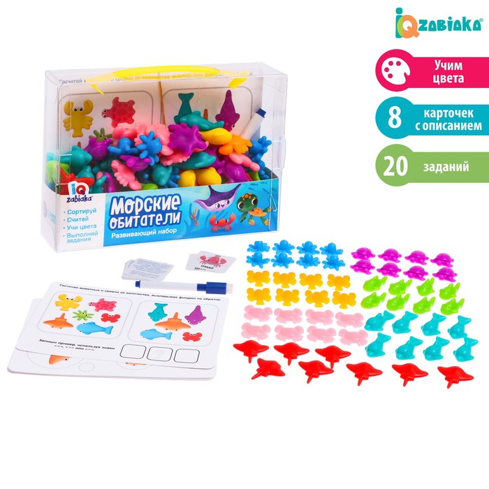 Развивающий набор «Морские обитатели» подходит для занятий по методике Монтессори. С набором малыш выучит основные цвета, потренирует мелкую моторику, логическое мышление, память, а также познакомится с разными животными.