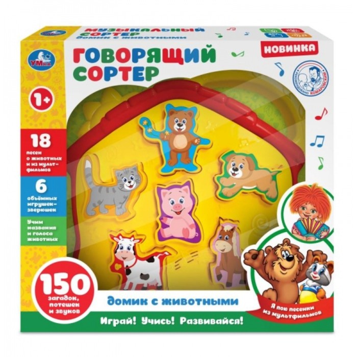 Сортер 18 песен из м/ф и о животных, 6 игрушек, учим названия животных